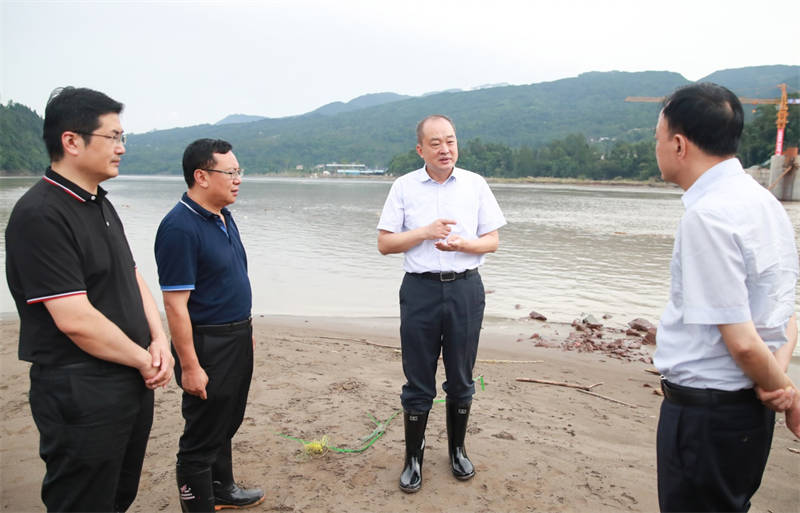 蘭開馳在草壩青衣江大橋調(diào)研時(shí)強(qiáng)調(diào)—— 沖鋒在前克難攻堅(jiān)加速恢復(fù)生產(chǎn)