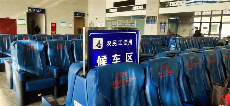 三是設(shè)置專門候車區(qū)。專設(shè)農(nóng)民工候車區(qū),配備軟座,方便農(nóng)民工朋友更好的候車休息,檢票口開通“刷臉驗(yàn)票”及“人工通道”,安排工作人員引導(dǎo)農(nóng)民工朋友方便、快捷地乘坐客車。