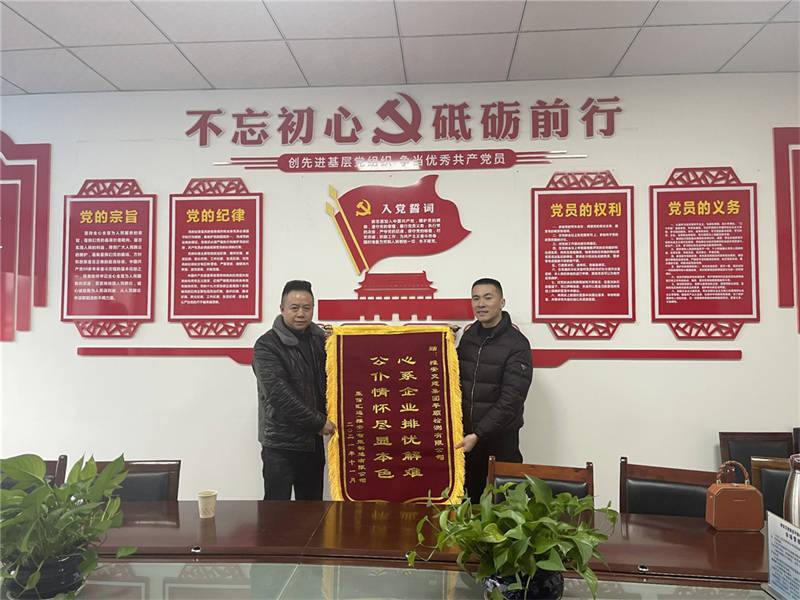 近日,贏信匯通(雅安)智能制造有限公司將一面印有“公仆情懷盡顯本色 心系企業(yè)排憂解難”的錦旗送到平順公司,對公司提供的高效、便捷、優(yōu)質(zhì)的服務表示感謝。
