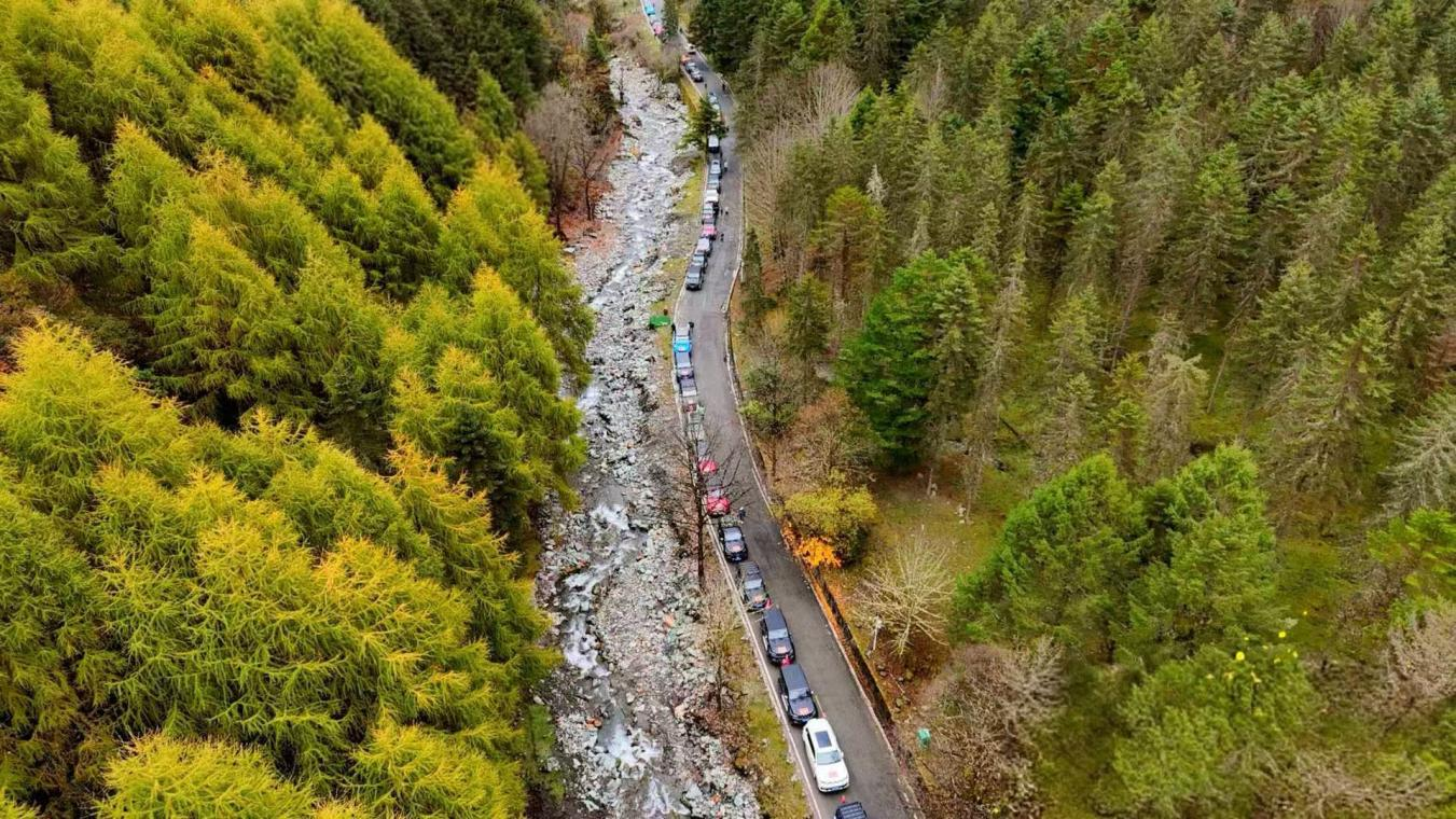 在穿越巡游階段,150輛越野車在大本營集結(jié),組成一條震撼的長龍,開啟穿越巡游活動,前往雅安市寶興縣參加楓葉節(jié)開幕式,沉浸式體驗神木壘景區(qū)、到鄧池溝與大熊貓相約、走進(jìn)藏寨體驗加絨藏族民俗文化,全方位感受雅安的好山好水好風(fēng)光。