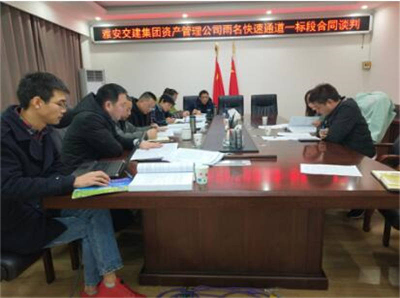 1月8日,成雅高速金雞關互通改造暨雨名快速通道合同談判工作在雅安交建集團四樓會議室進行。