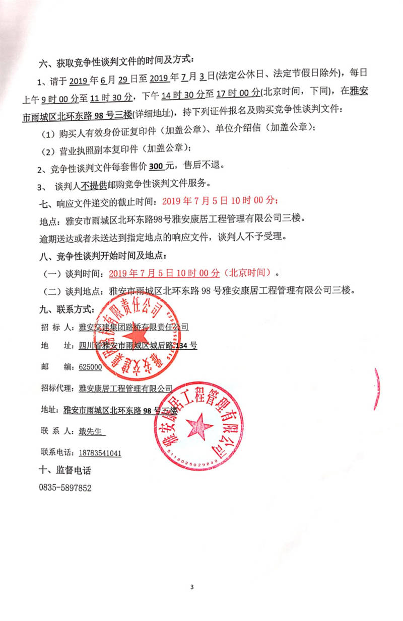 雅安交建集團(tuán)路橋有限責(zé)任公司國道351線磽磧至夾金山路面改造工程防裂卷材采購競(jìng)爭(zhēng)性談判公告