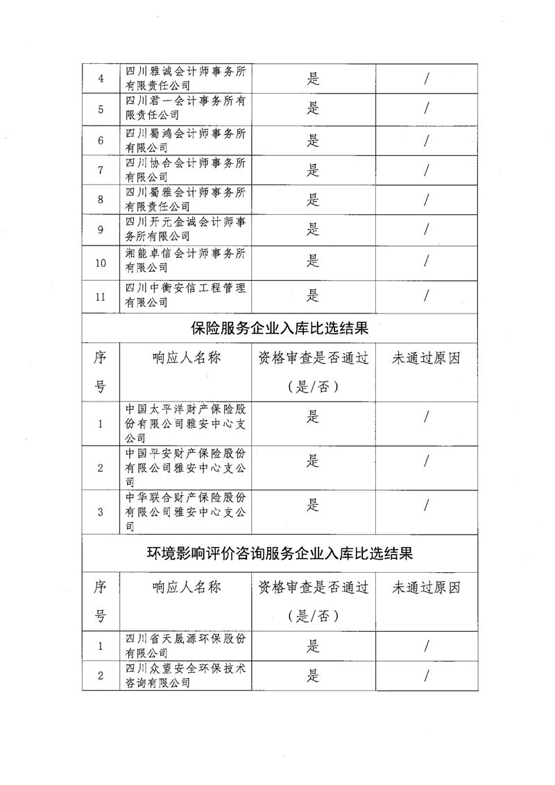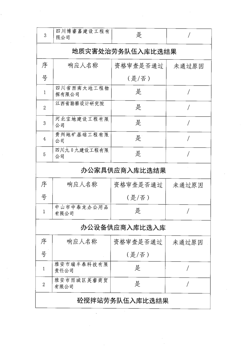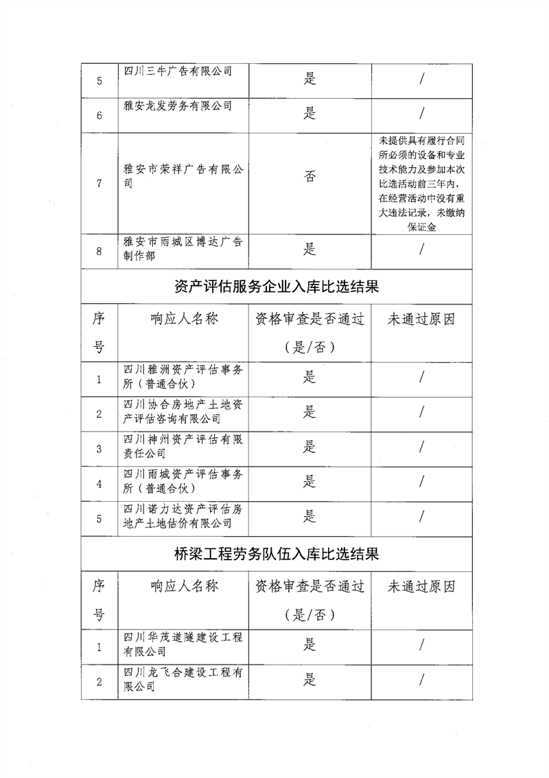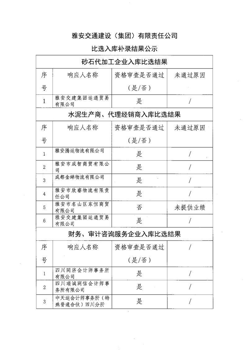 雅安交通建設(shè)(集團(tuán))有限責(zé)任公司比選入庫補(bǔ)錄結(jié)果公示