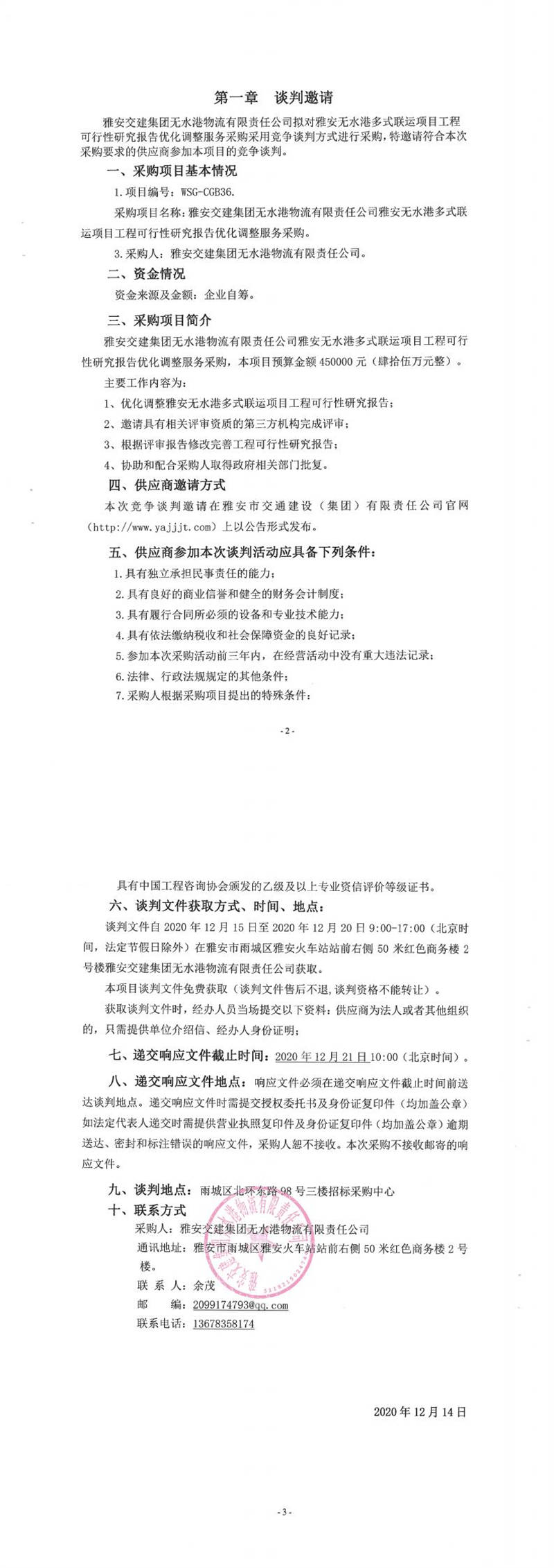 雅安交建集團無水港物流有限責任公司雅安無水港多式聯(lián)運項目工程可行性研究報告優(yōu)化調(diào)整服務(wù)采購競爭談判公告