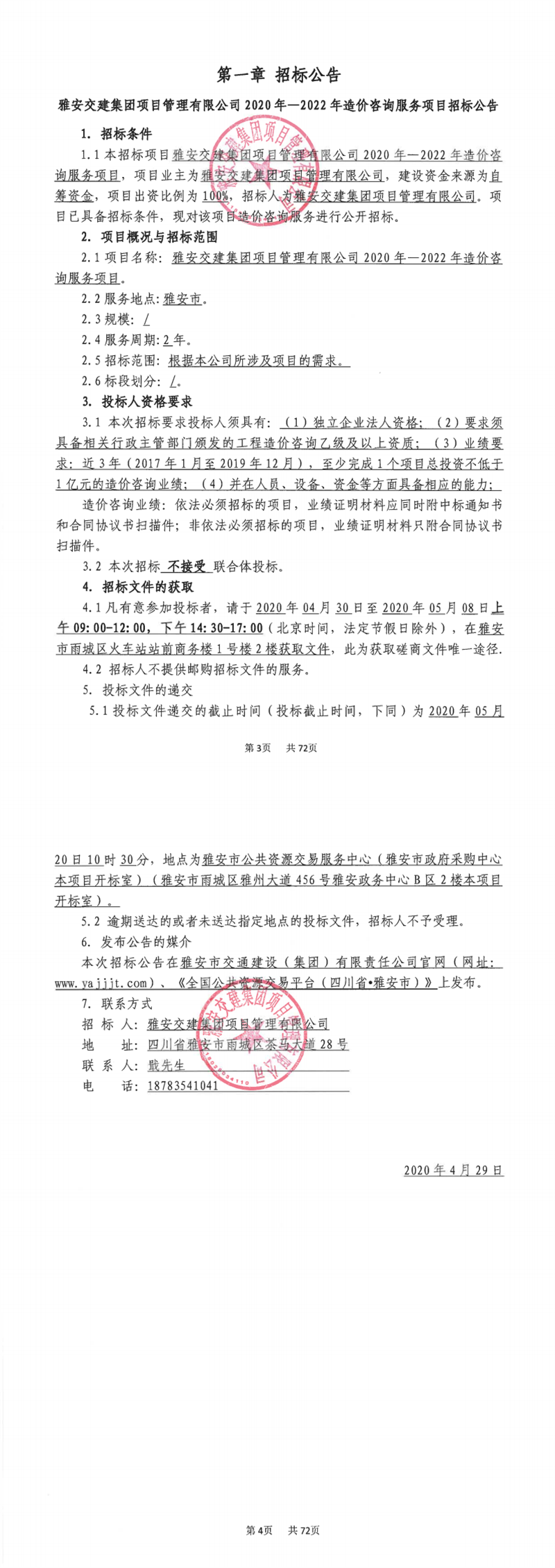 雅安交建集團(tuán)項(xiàng)目管理有限公司2020年-2022年造價(jià)咨詢服務(wù)項(xiàng)目招標(biāo)公告