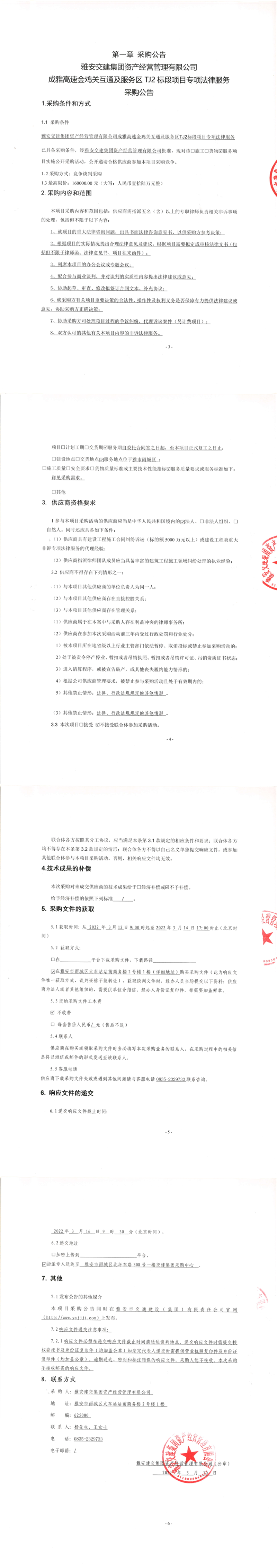雅安交建集團(tuán)資產(chǎn)經(jīng)營管理有限公司成雅高速金雞關(guān)互通及服務(wù)區(qū)TJ2標(biāo)段項目專項法律服務(wù)采購公告