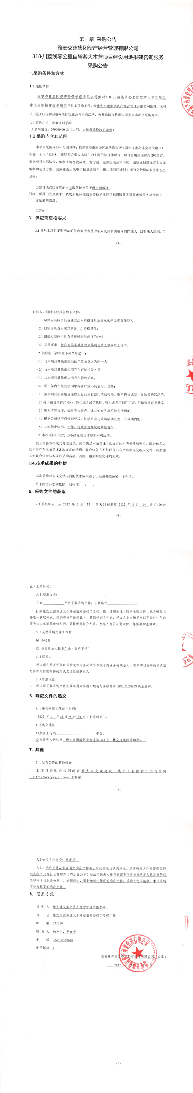 雅安交建集團(tuán)資產(chǎn)經(jīng)營(yíng)管理有限公司318.川藏線零公里自駕游大本營(yíng)項(xiàng)目建設(shè)用地報(bào)建咨詢服務(wù)采購(gòu)公告