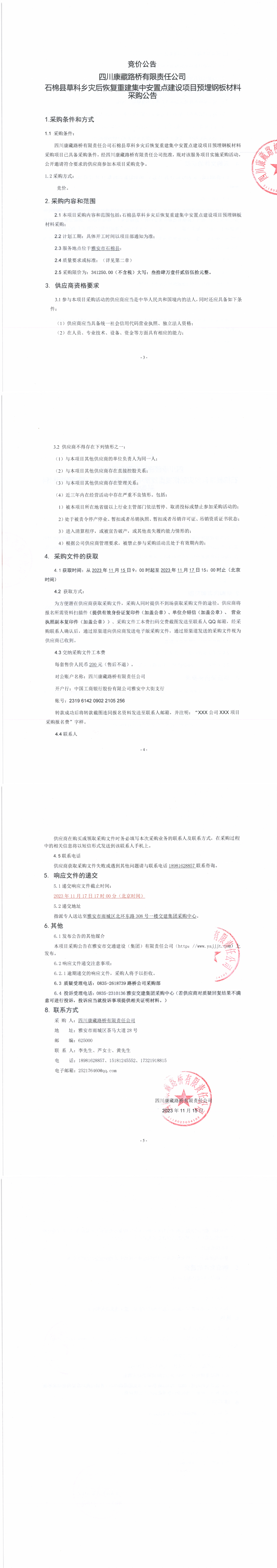 四川康藏路橋有限責任公司石棉縣草科鄉(xiāng)災(zāi)后恢復(fù)重建集中安置點建設(shè)項目預(yù)埋鋼板材料采購公告