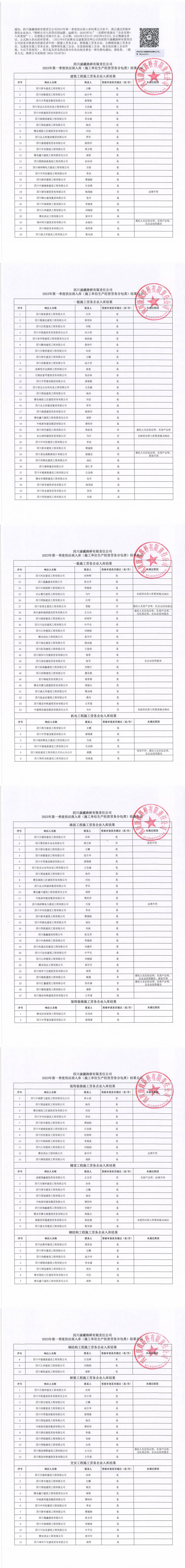 四川康藏路橋有限責任公司2023年第一季度供應商入庫(施工單位生產(chǎn)經(jīng)營勞務(wù)分包類)結(jié)果公示