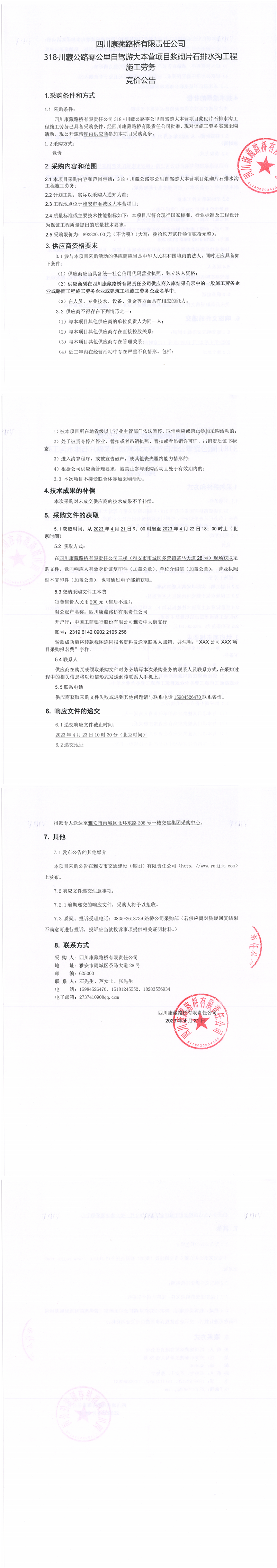 四川康藏路橋有限責(zé)任公司318·川藏公路零公里自駕游大本營(yíng)項(xiàng)目漿砌片石排水溝工程施工勞務(wù)公告
