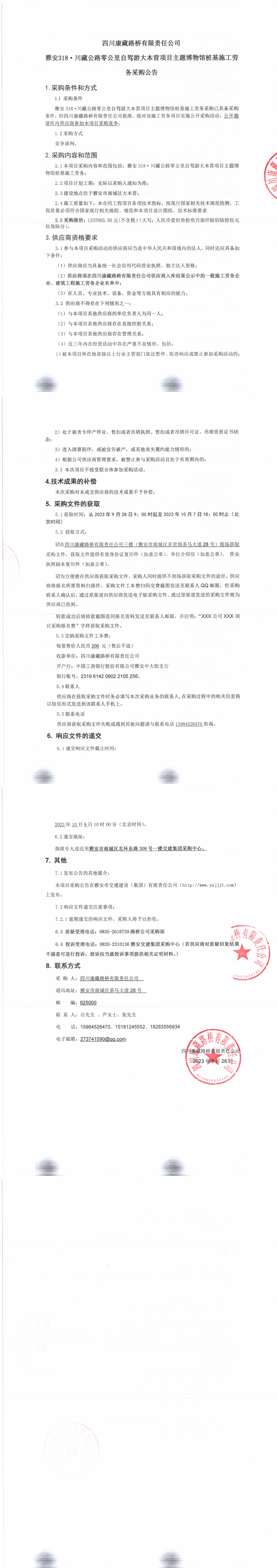 四川康藏路橋有限責任公司雅安318·川藏公路零公里自駕游大本營項目主題博物館樁基施工勞務采購公告