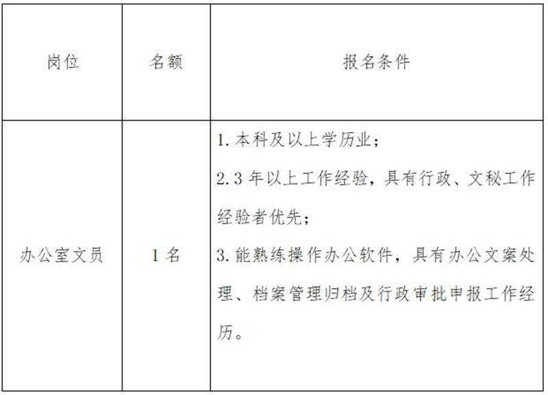 雅安交建集團康居建設(shè)工程質(zhì)量與室內(nèi)環(huán)境污染檢測有限公司是雅安市交通建設(shè)(集團)有限責(zé)任公司下屬子公司,主要從事民用建筑室內(nèi)環(huán)境污染檢測業(yè)務(wù),F(xiàn)根據(jù)公司業(yè)務(wù)發(fā)展需要,擬向社會公開招聘1名辦公室文員,現(xiàn)將有關(guān)事項公告如下: