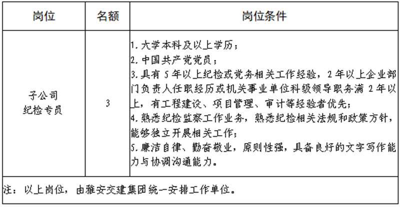 雅安交建集團(tuán)關(guān)于公開招聘所屬子公司紀(jì)檢專員的公告