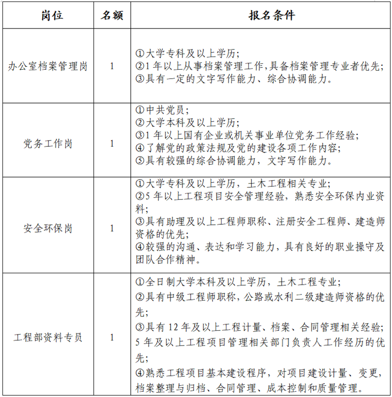 三、報名崗位、名額、條件