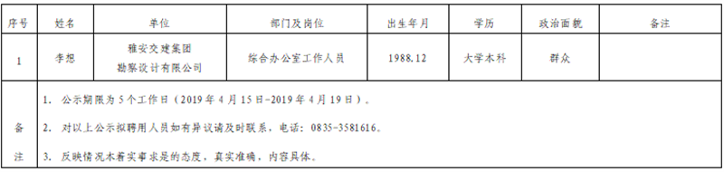 雅安交建集團(tuán)子公司擬聘用人員公示(勘察設(shè)計公司)