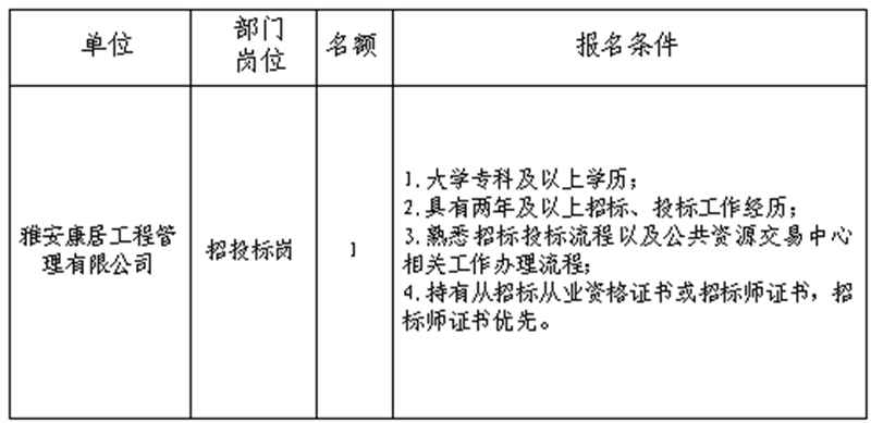 雅安交建集團(tuán)關(guān)于公開招聘所屬子公司工作人員的公告(康居公司)