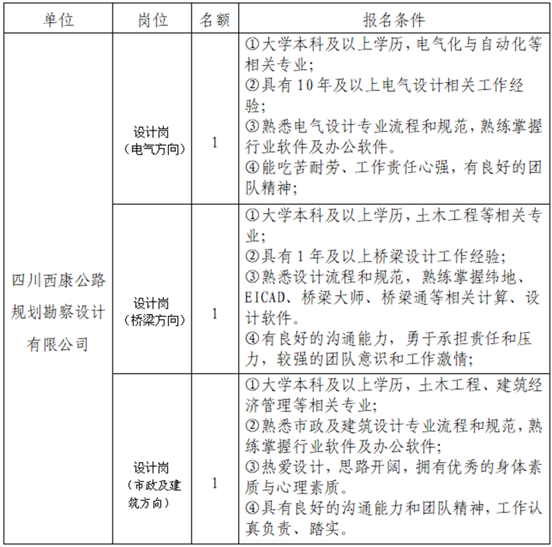 雅安交建集團(tuán)關(guān)于公開招聘所屬子公司工作人員的公告(勘察設(shè)計公司)