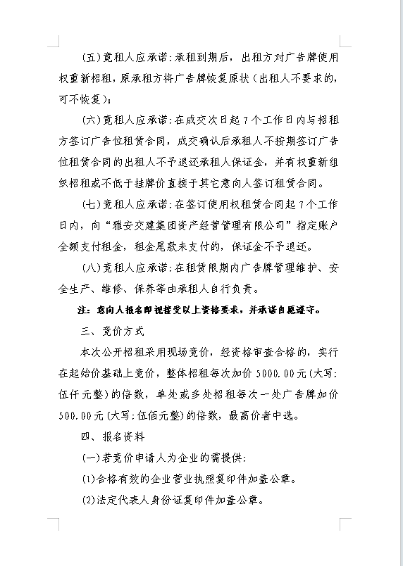 雅安交建集團資產(chǎn)經(jīng)營管理有限公司關(guān)于戶外廣告位競價招租的公告附件