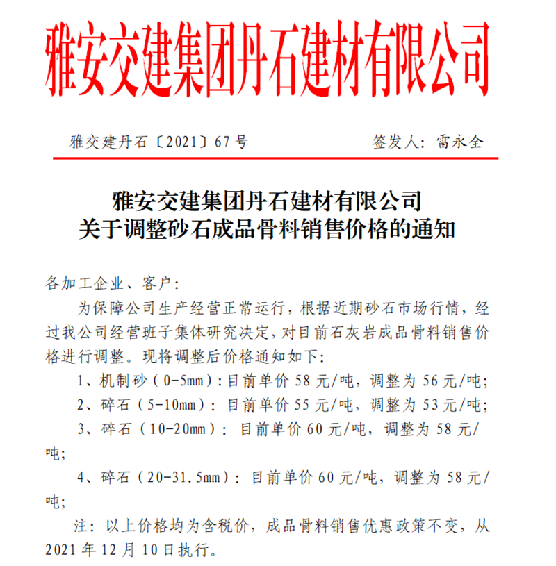 ÑŰ²½»½¨¼¯ˆF(tu¨¢n)µ¤Ê¯¹«Ë¾êP(gu¨¡n)ÓÚÕ{(di¨¤o)Õûɰʯ³ÉÆ·¹ÇÁÏäNÊÛƒr¸ñµÄ֪ͨ£¨2021.12.9£©