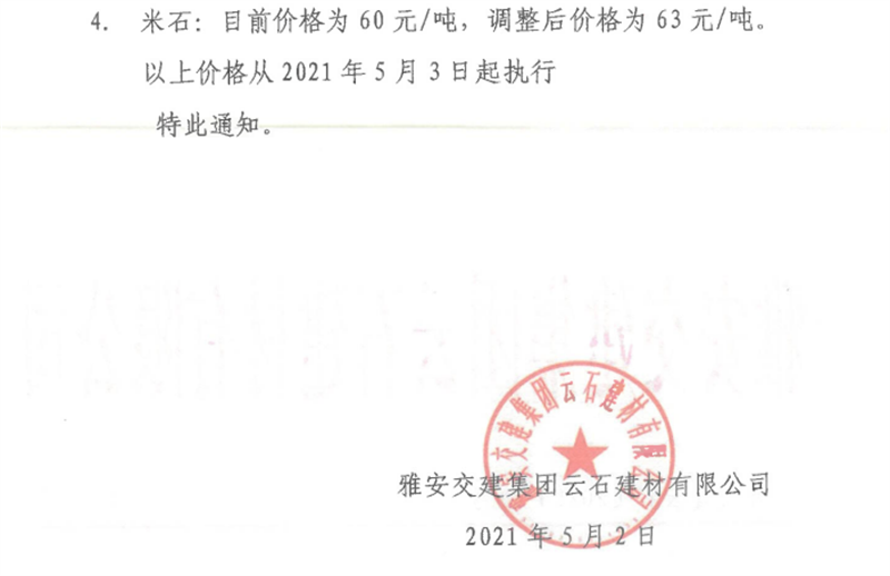 ÑŰ²½»½¨¼¯ˆF(tu¨¢n)ÔÆÊ¯¹«Ë¾É°Ê¯¹ÇÁÏäNÊÛƒr¸ñÇé›r±í£¨2021.5.3£©