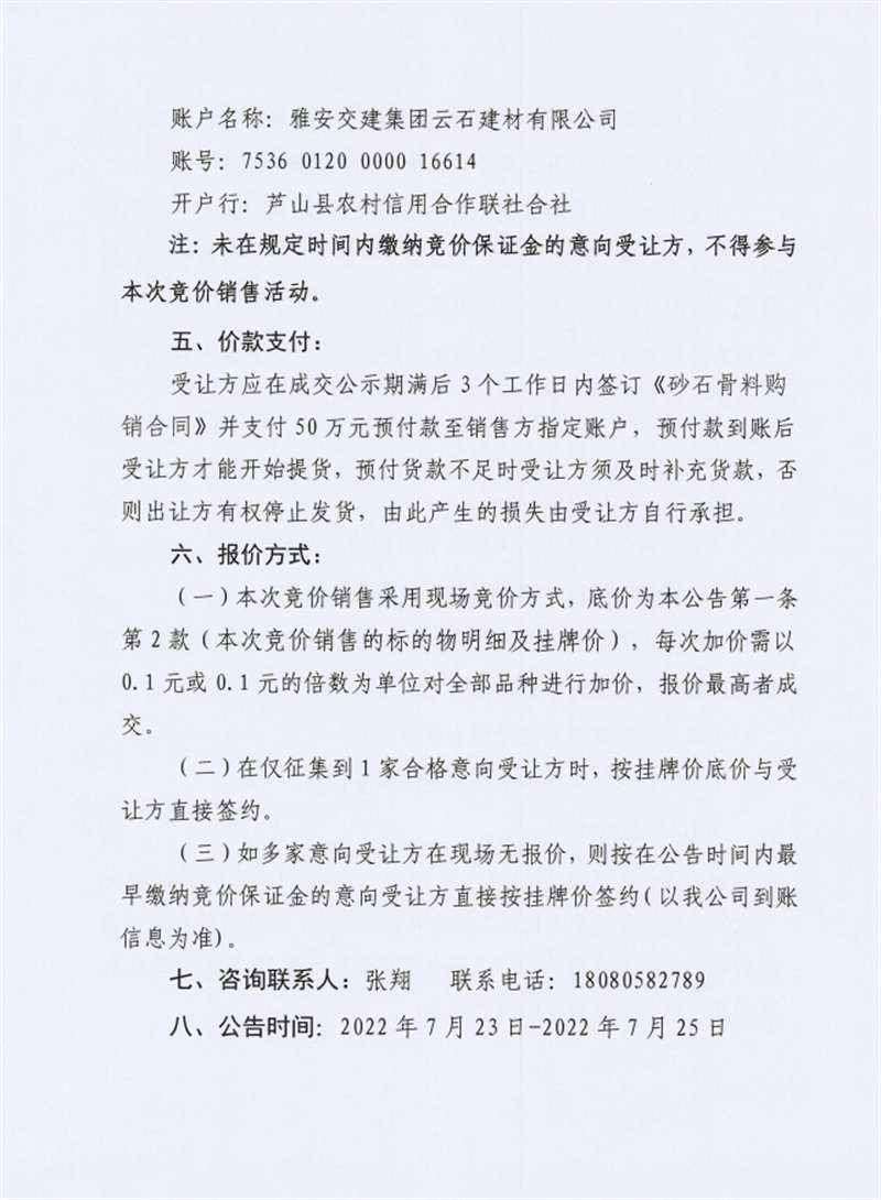 雅安交建集團(tuán)云石建材有限公司成品料競(jìng)價(jià)銷(xiāo)售公告